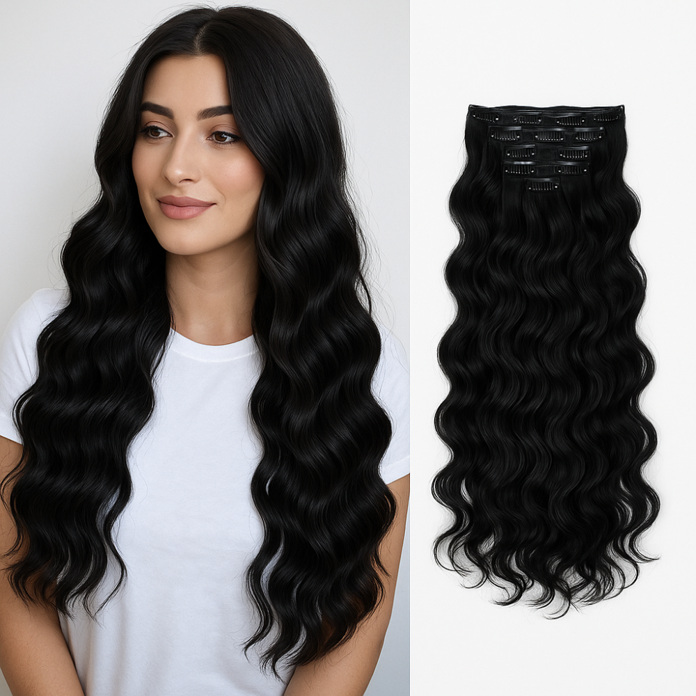 Crafted from 100% premium Vietnamese human hair, these extensions are ultra-soft and lightweight. The discreet, secure clip-in system makes wear easy and comfortable – blending seamlessly for instant length, touchable volume, and reflective, wave-kissed radiance.