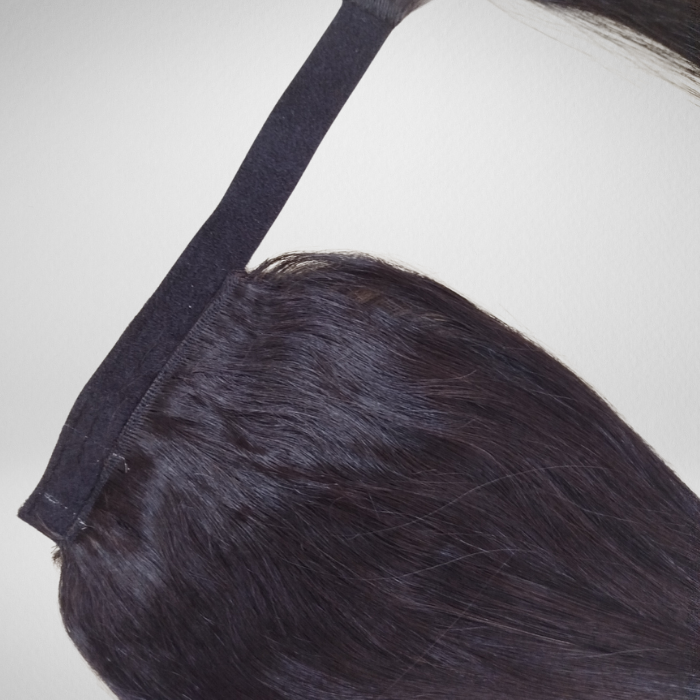 Clip or wrap the ponytail extension securely around the base of your natural ponytail.