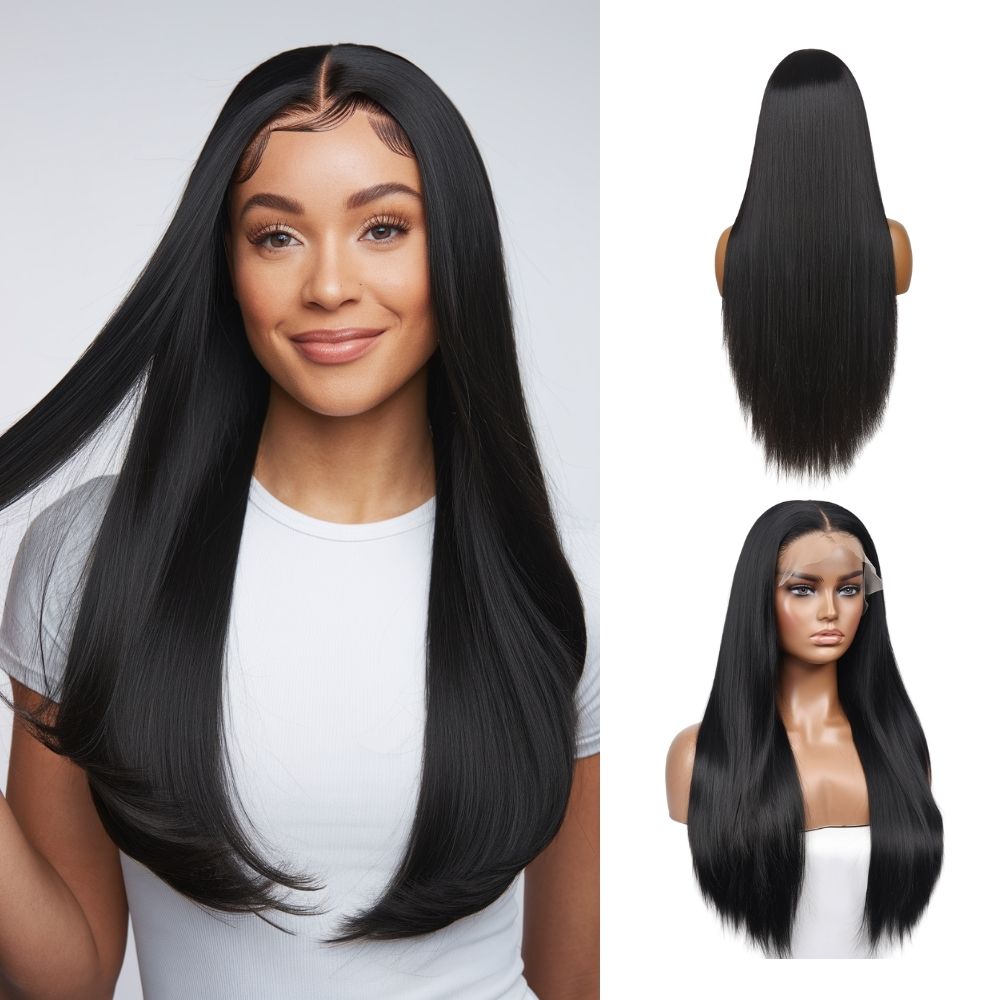 The lace front melts seamlessly for a realistic hairline and flawless part, while the breathable cap ensures comfort and stability all day – true refinement with the Straight Lace Front Wig – Natural Black (1B).