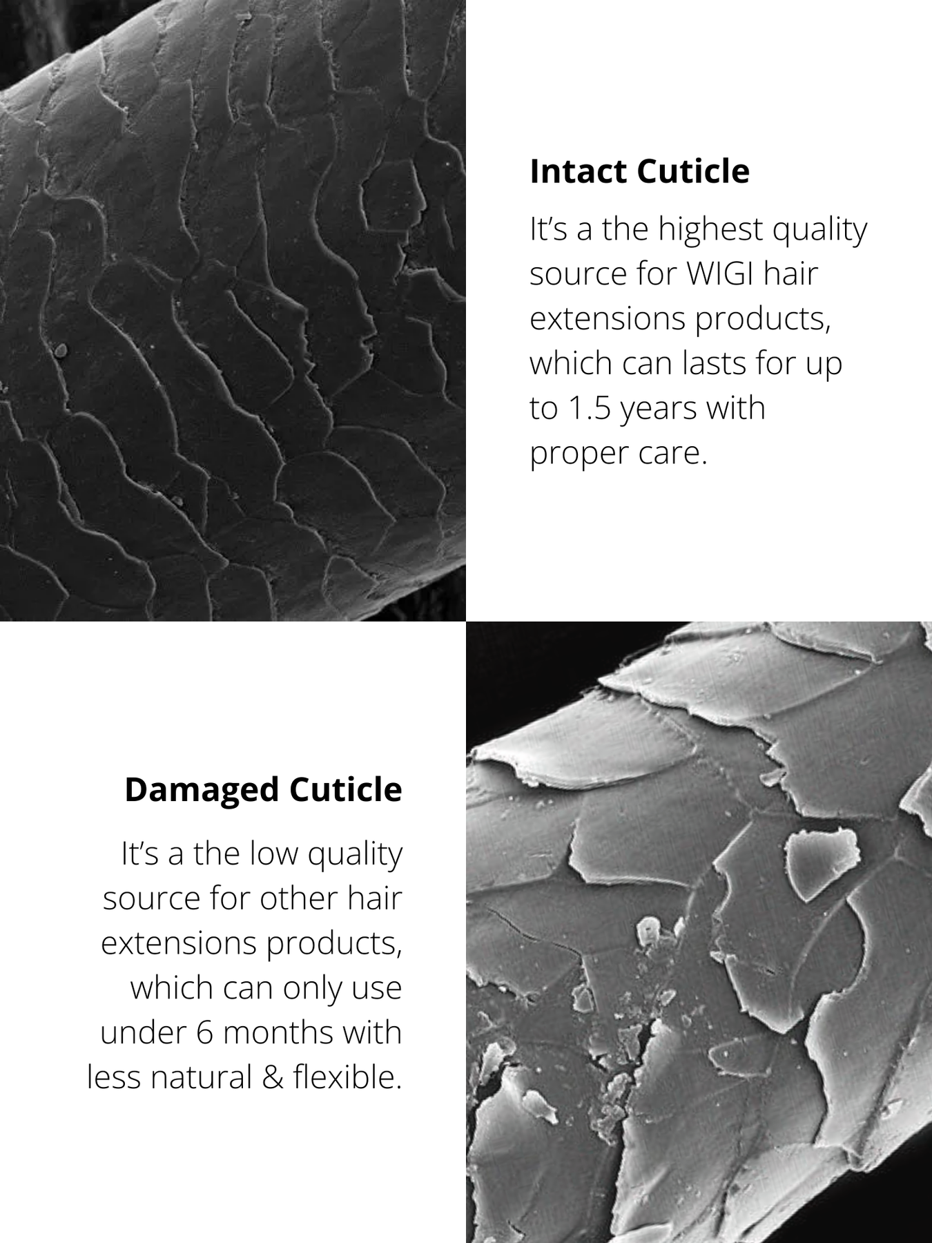 - With proper care, WIGI hair extensions can last up to 1-1.5 years or longer. Because our hair material is 100% remy hair & intact cuticle which is known as the highest quality of hair extension source.