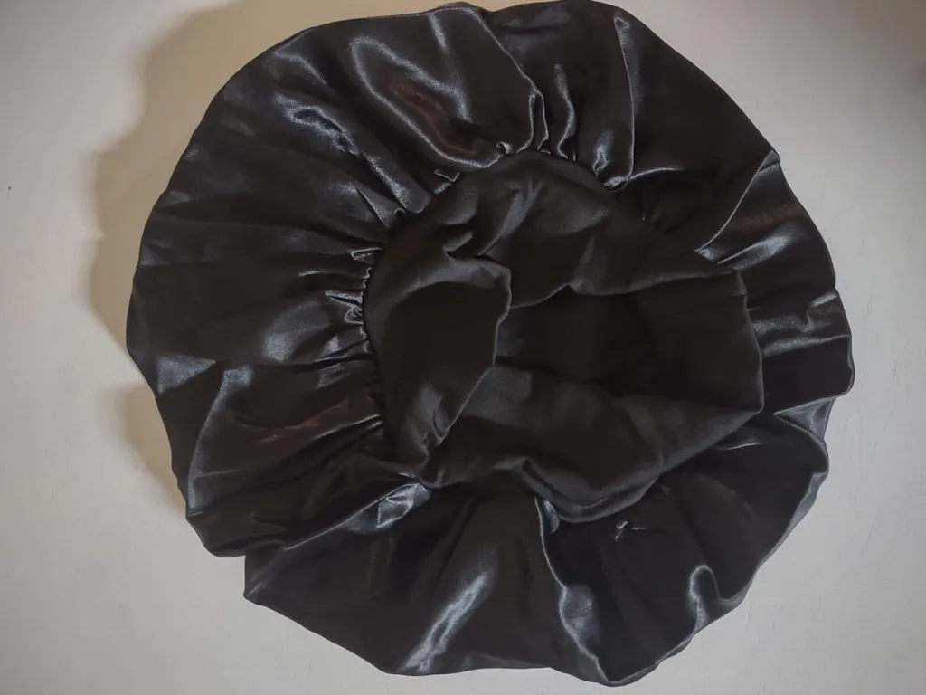 Premium Mulberry Silk Sleeping Bonnet - Round Style & Black