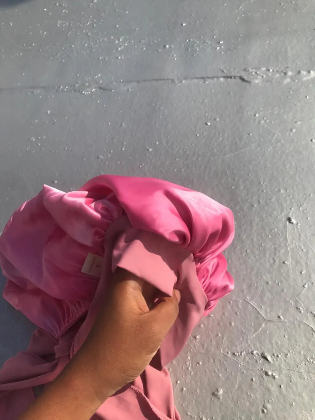 This is a retro-style turban featuring a long hat with folds, this hat can be worn as a fashion accessory, or it can be a great nightcap. The fabric is made of 100% mulberry silk. It can reduce frizzy hair and is good for nourishing and protecting your hair.