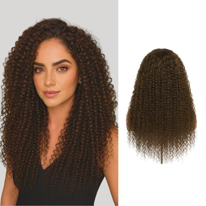 La peluca con cierre de cabello humano premium WIGI Hair ofrece volumen natural y flexibilidad de raya con cabello 100% remy para un ajuste perfecto y seguro.