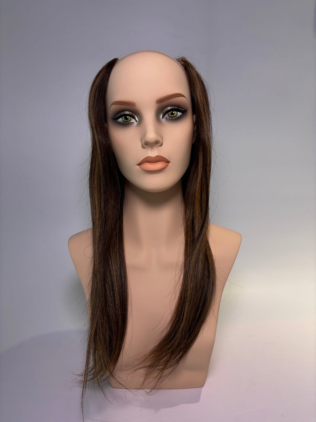 A rich chocolate base melts into caramel-blonde highlights sweetness for warm, salon-balyage dimension, while the straight, silky texture delivers that glass-hair finish – elegant, modern, and effortlessly polished.