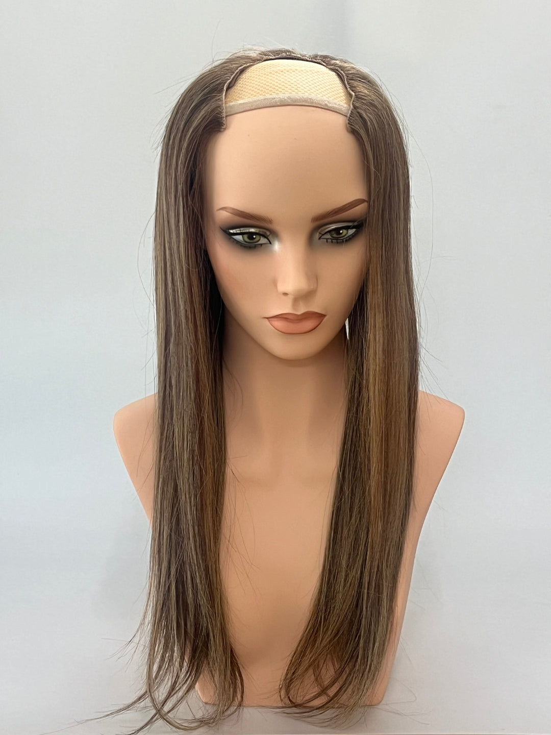 100% Hand Tied Straight U Part Wig – Balayage Chocolate Brown to Caramel Blonde (4/27/4)